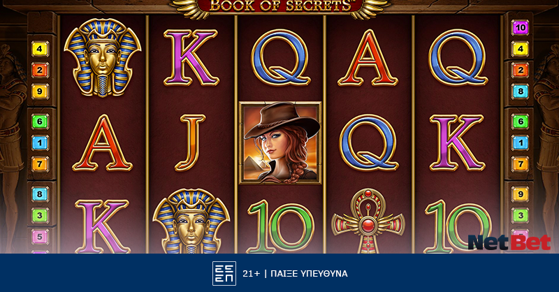 Το Book of Secrets είναι ένα παιχνίδι καζινο online που δημιουργήθηκε από τη Synot. Είναι γεμάτο με ενδιαφέρουσες λειτουργίες και είναι διαθέσιμο για παιχνίδι στο NetBet Casino. Ο κουλοχέρης Book of Secrets είναι ένα παραδοσιακό παιχνίδι για froutakia με θέμα την Αίγυπτο που κυκλοφόρησε από τη Synot. Παίζει σε ένα κλασικό πλέγμα 5 τροχών, 3 σειρών και 10 γραμμών πληρωμής.