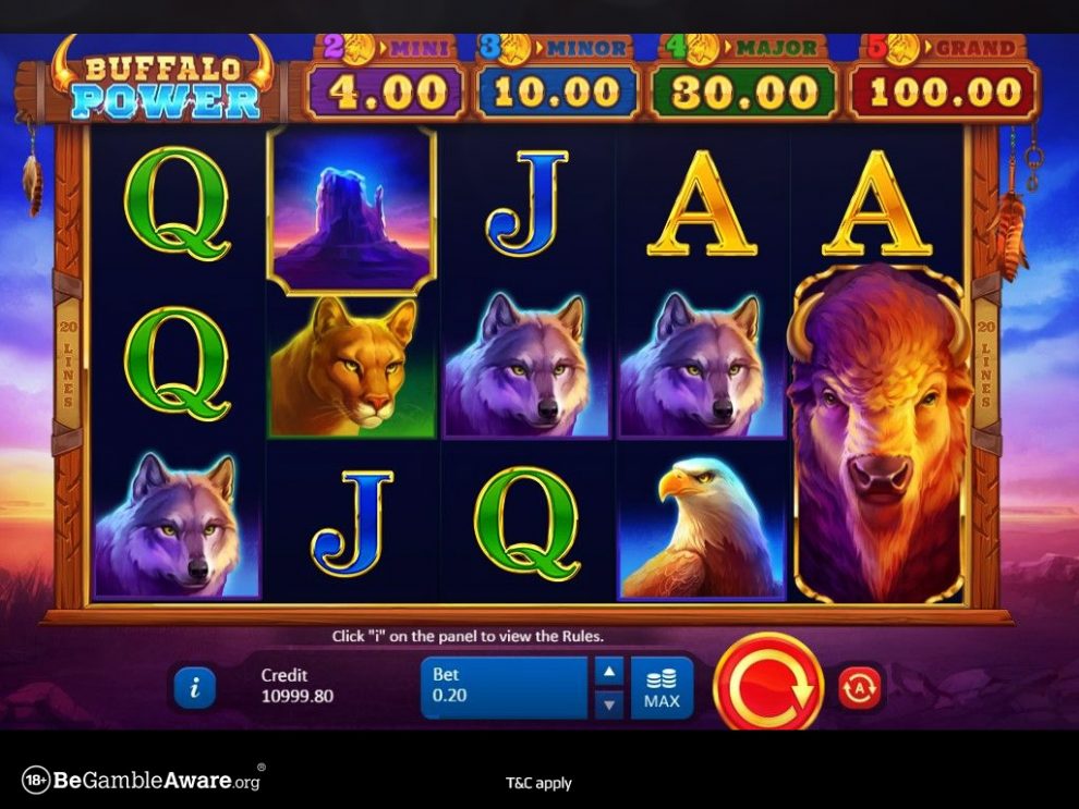 Ψάχνεις για συναρπαστικά παιχνίδια κουλοχέρηδων; Το Buffalo Power: Hold and Win σε προσκαλεί σε ένα ταξίδι στα λιβάδια της βορείου Αμερικής, όπου θα δεις ένα βουβάλι να πρωταγωνιστεί! Στο πλέγμα υπάρχουν 5 τροχοί και 3 γραμμές, και θα δεις διάφορα ζώα όπως λύκους και αρκούδες. Το βουβάλι αποτελεί το σύμβολο wild, άρα μπορεί να δώσει επιπλέον ώθηση στο παιχνίδι σου αντικαθιστώντας τα βασικά σύμβολα. Αν βρεις σύμβολα scatters στους τροχούς 2, 3 και 4, θα κερδίσεις αυτόματα 8 δωρεάν περιστροφές. Θέλεις περισσότερα; Στο παιχνίδι μπορείς να επωφεληθείς από σύμβολα wild που κλειδώνουν στη θέση τους με πολλαπλασιαστή x2. Επιπλέον, υπάρχει και το σύμβολο του ήλιου, το οποίο μπορεί να σου χαρίσει πολλαπλασιαστές μέχρι και x10!
